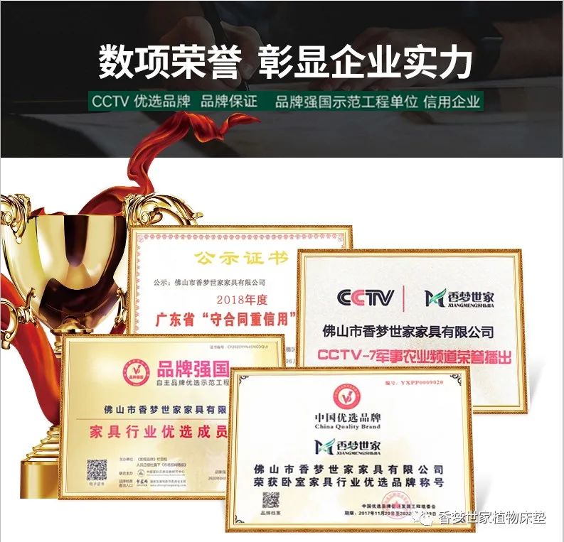 “专注植物床垫,匠心铸造品质。”香梦世家严选各类天然植物纤维(黄麻、椰棕、山棕、乳胶、竹炭等)作为床垫生产原材料,我们感恩大自然的恩赐,利用植物纤维的原生优点,为消费者打造健康舒适、受力均匀、环保无味、静音透气、经久耐用的养生好床垫。从设计到出品,一丝不苟,经过细致的工艺考究,严格质检筛选。